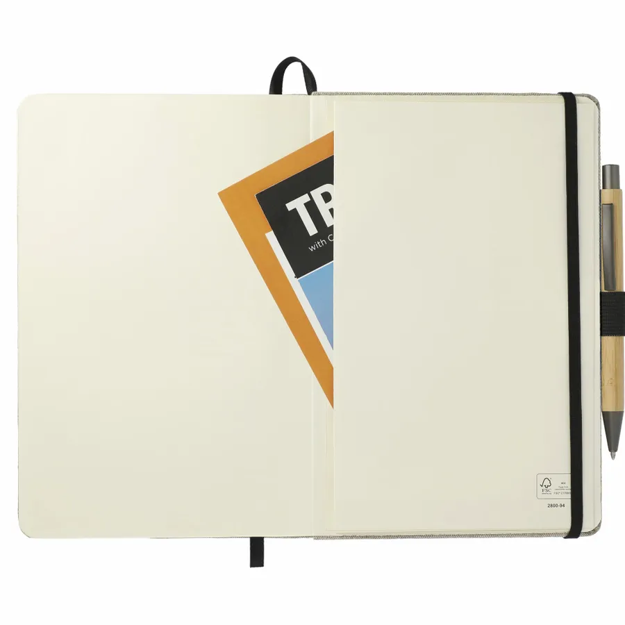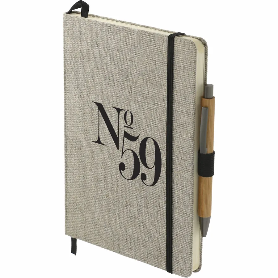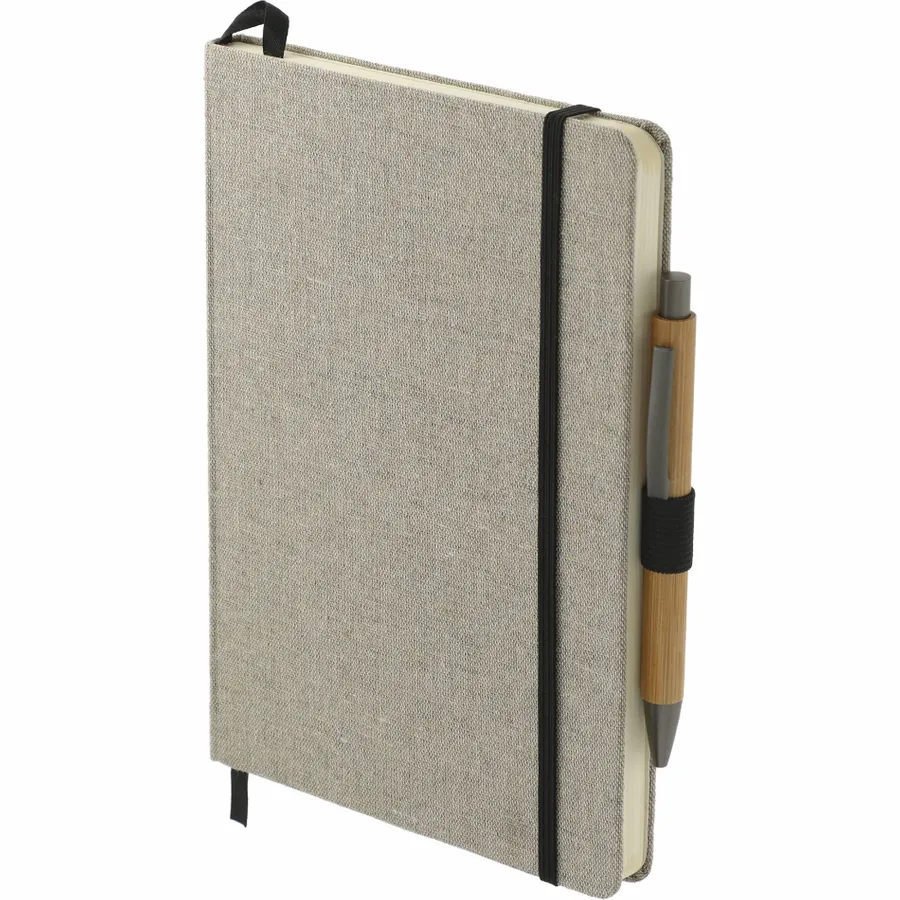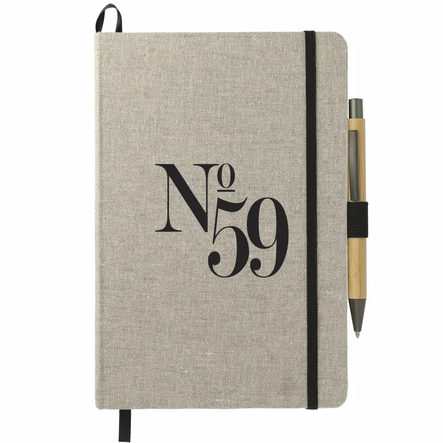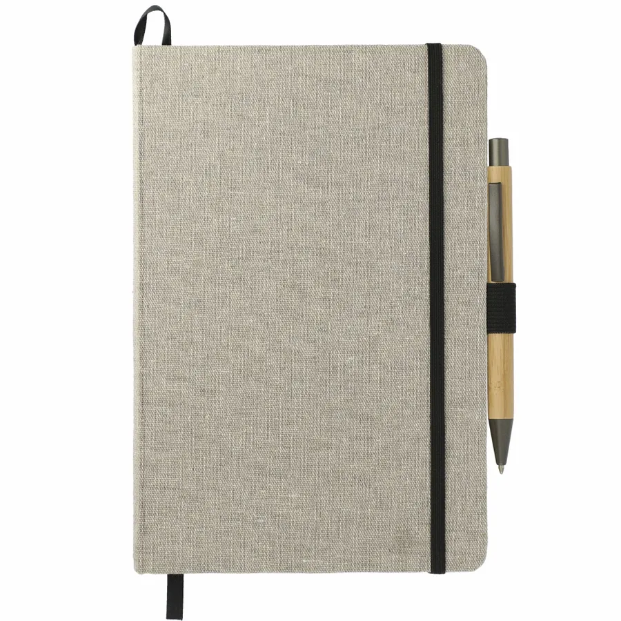 Das 5,5 x 8,5 Recycled Cotton Bound Journal Set enthält (2800-94) 5,5 x 8,5 Recycled Cotton Bound Journal und (1066-49) Bamboo Quick-Dry Gel Ballpoint. Das 5,5 x 8,5 Recycled Cotton Bound Journal ist das perfekte Journal für alle Ihre Notizen. Mit hartem Einband aus recycelter Baumwolle. Naturfarbener, elastischer Verschluss, Stiftschlaufe und Seitenmarker aus Band. 80 Blatt cremefarbenes, liniertes FSC-Mix-Papier. Rückseitige Dokumententasche. FSC-Etikett auf der Innenseite. Durch eine Partnerschaft mit 1% For The Planet wird ein Prozent des Umsatzes dieses und aller EcoSmart-Produkte an gemeinnützige Umweltschutzorganisationen gespendet.
