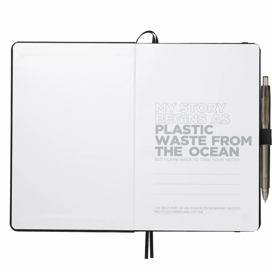 Dieses Set enthält das (2800-80) 5,5 x 8,5 Recycled Marine Bound Journal Set und den (6003-29) FUNCTION RPET Gel Pen. Mit dem einzigartigen Einbandmaterial Repreve, das aus recyceltem Meereskunststoff und Abfällen von den Küsten der Entwicklungsländer hergestellt wird. Mit farblich passendem Gummiverschluss, Stiftschlaufe und Seitenmarkierung aus Band. 96 Blatt liniertes Recyclingpapier. Im Rahmen einer Partnerschaft mit 1% For The Planet wird ein Prozent des Umsatzes aller EcoSmart-Produkte an gemeinnützige Umweltschutzorganisationen gespendet.