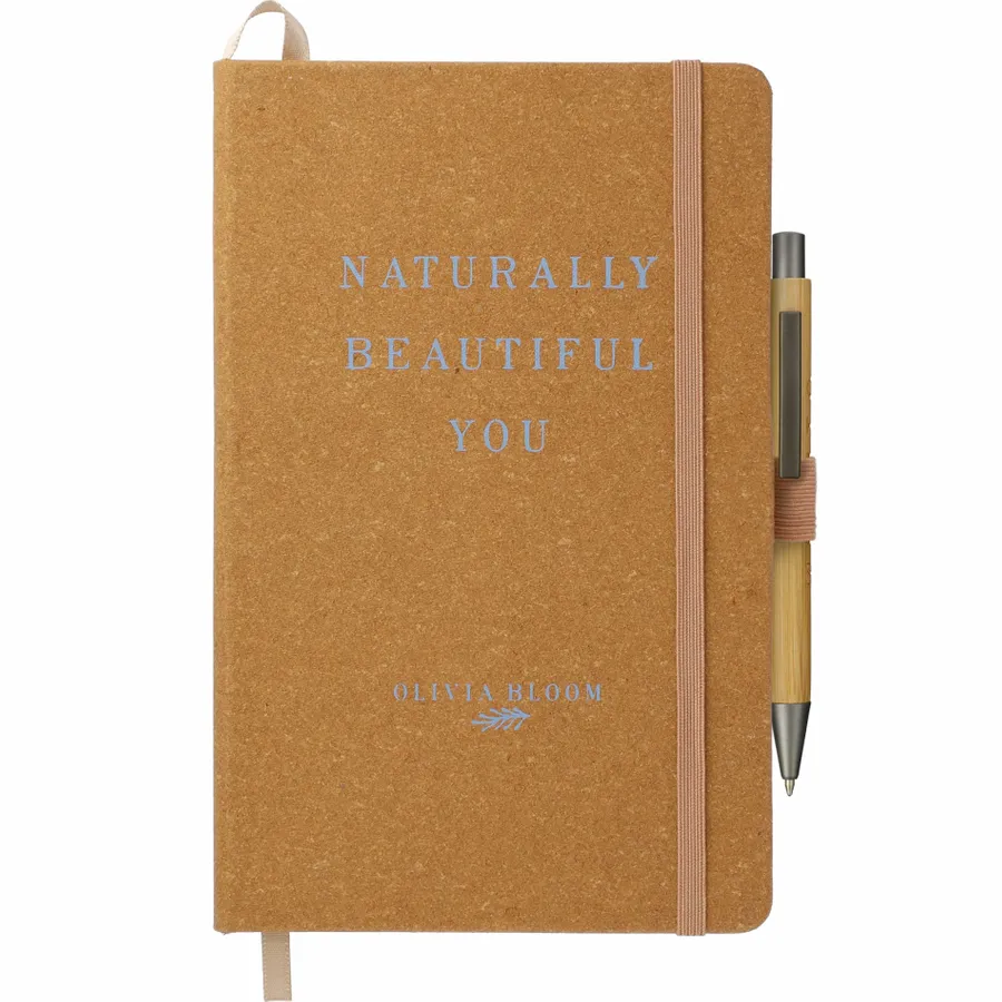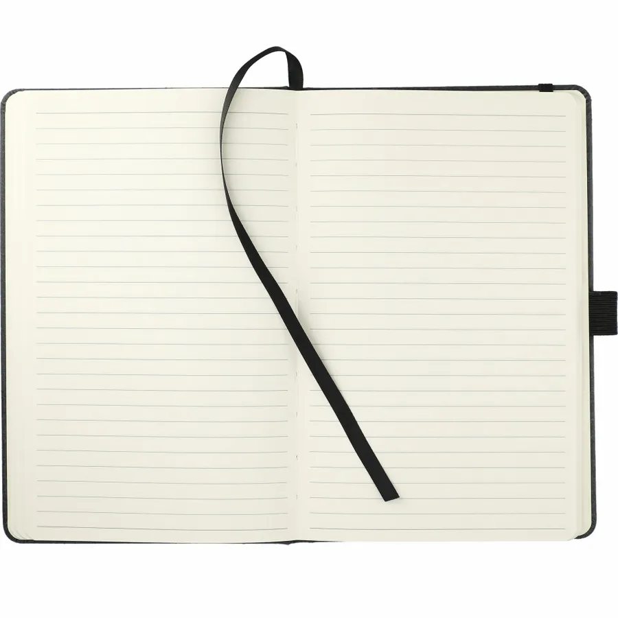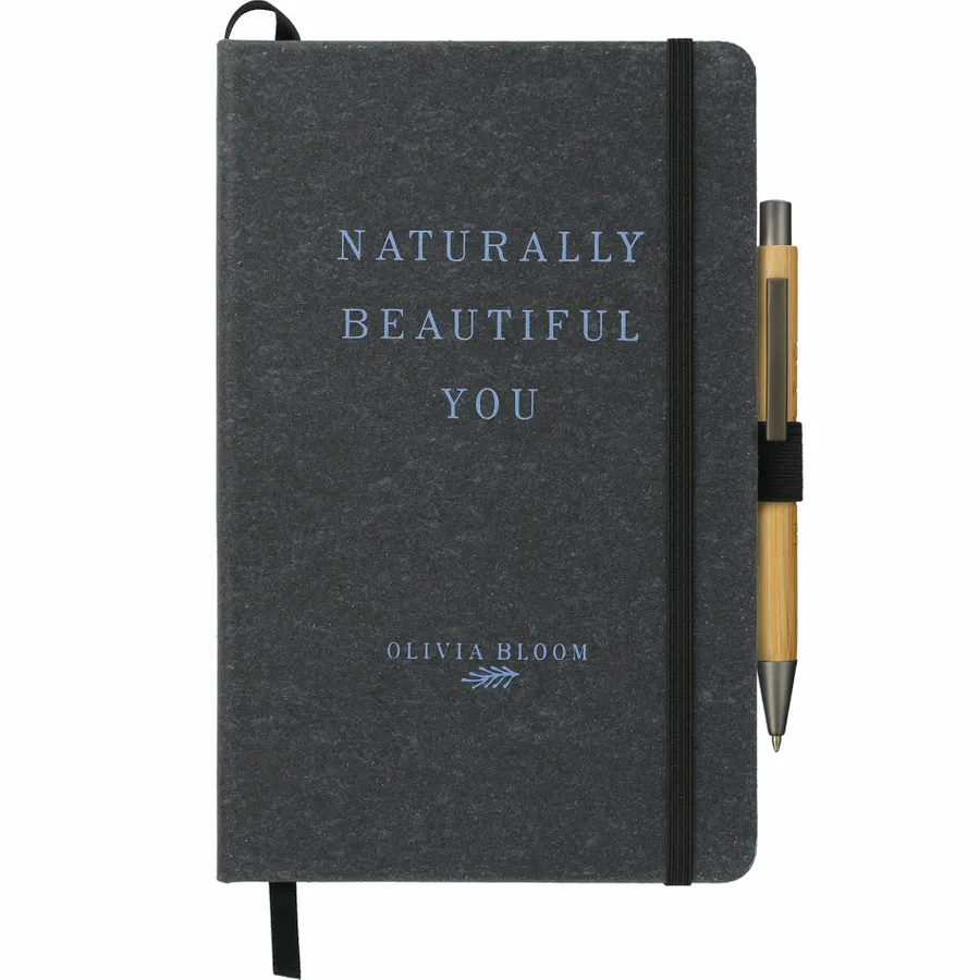 Das FSC Mix Recycled Leather Bound Journal im Format 5,5 x 8,5 besteht aus einem harten Einband aus recyceltem Leder und 80 Blatt liniertem FSC Mix-Papier. Dieses stilvolle, umweltfreundliche Journal verfügt über einen farblich abgestimmten, elastischen Verschluss, eine Stiftschlaufe und einen Seitenmarker mit Farbband. Das Recycled Leather Bound Journal verfügt über eine Dokumententasche auf der Rückseite, in der wichtige Notizen aufbewahrt werden können. Durch eine Partnerschaft mit 1% For The Planet wird ein Prozent des Umsatzes dieses und aller EcoSmart-Produkte an gemeinnützige Organisationen gespendet, die sich für den Schutz des Planeten einsetzen.
