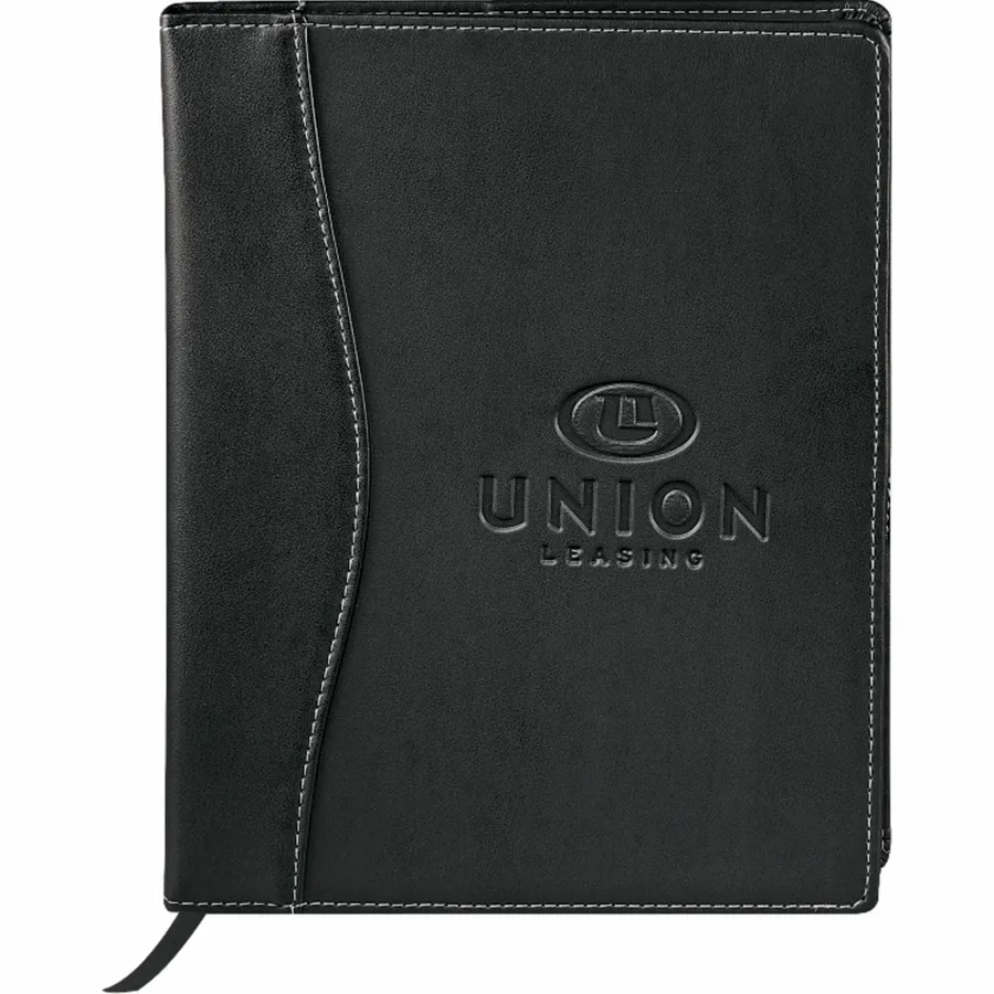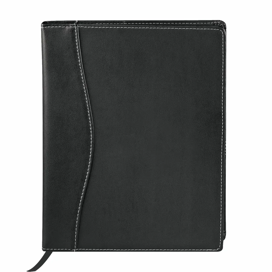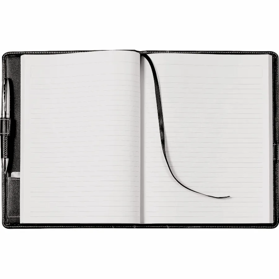 Das 7,5 x 9,5 FSC Mix Hampton Journal ist ein elegantes, gebundenes Journal mit einem Einband aus haltbarem UltraHyde-Material. Es enthält 90 Blatt cremefarbenes FSC-Mix-Papier im Format 7 x 9 mit Nachfüllpackungen, die separat bestellt werden können. Das Hampton Journal verfügt über eine Visitenkartentasche, ein integriertes Band zur Seitenmarkierung und eine doppelte Stiftschlaufe mit sicherem Verschluss für mehr Privatsphäre.