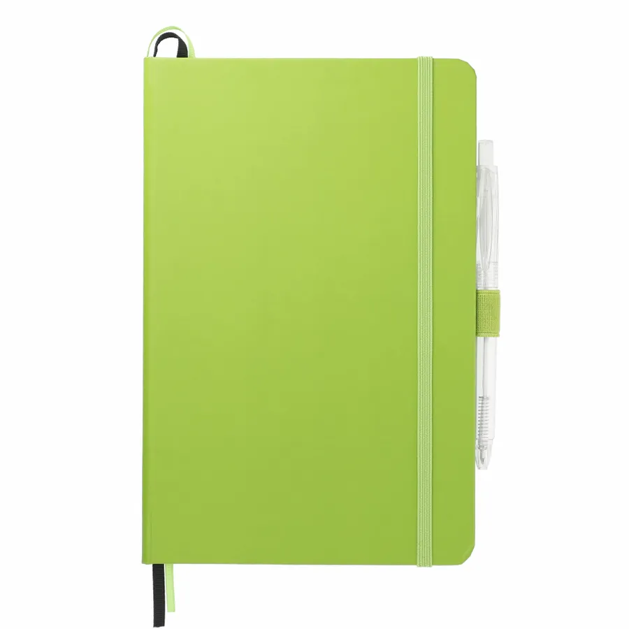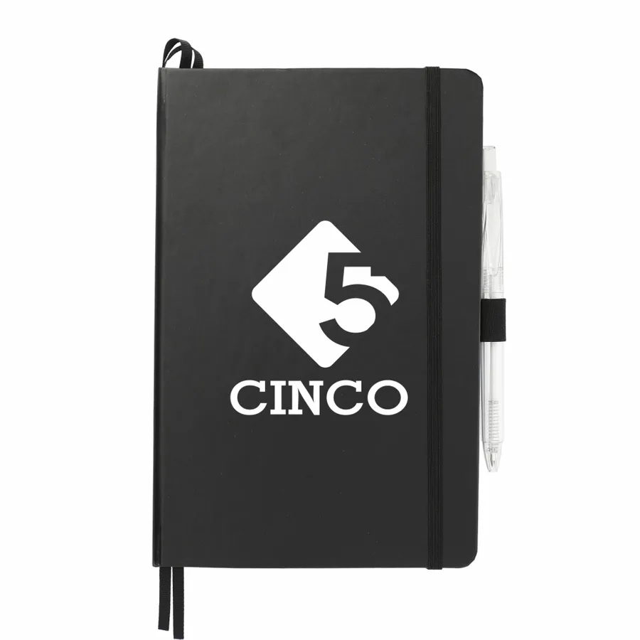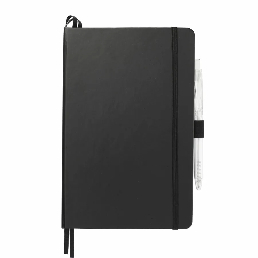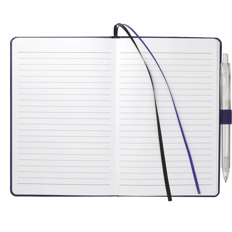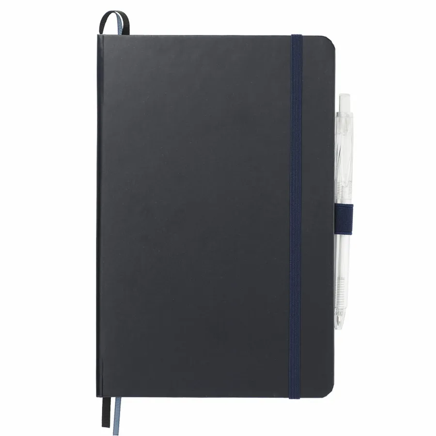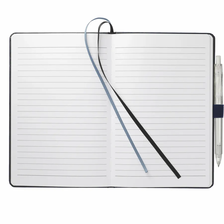 Das 5,5 x 8,5 FSC Mix Bound Journal Set enthält das 5,5 x 8,5 FSC Mix Bound Journal (2800-82) und den FUNCTION RPET Quick-Dry Gel Pen (6003-29). Das Set besteht aus einem Einband aus FSC-zertifiziertem Papier und 80 Blatt weißem, mit FSC-zertifizierter Sojatinte gefüttertem Papier. Mit farblich passendem Gummibandverschluss, Stiftschlaufe und Seitenmarker aus Band. Durch eine Partnerschaft mit 1% For The Planet wird ein Prozent des Umsatzes aller EcoSmart-Produkte an gemeinnützige Umweltschutzorganisationen gespendet.