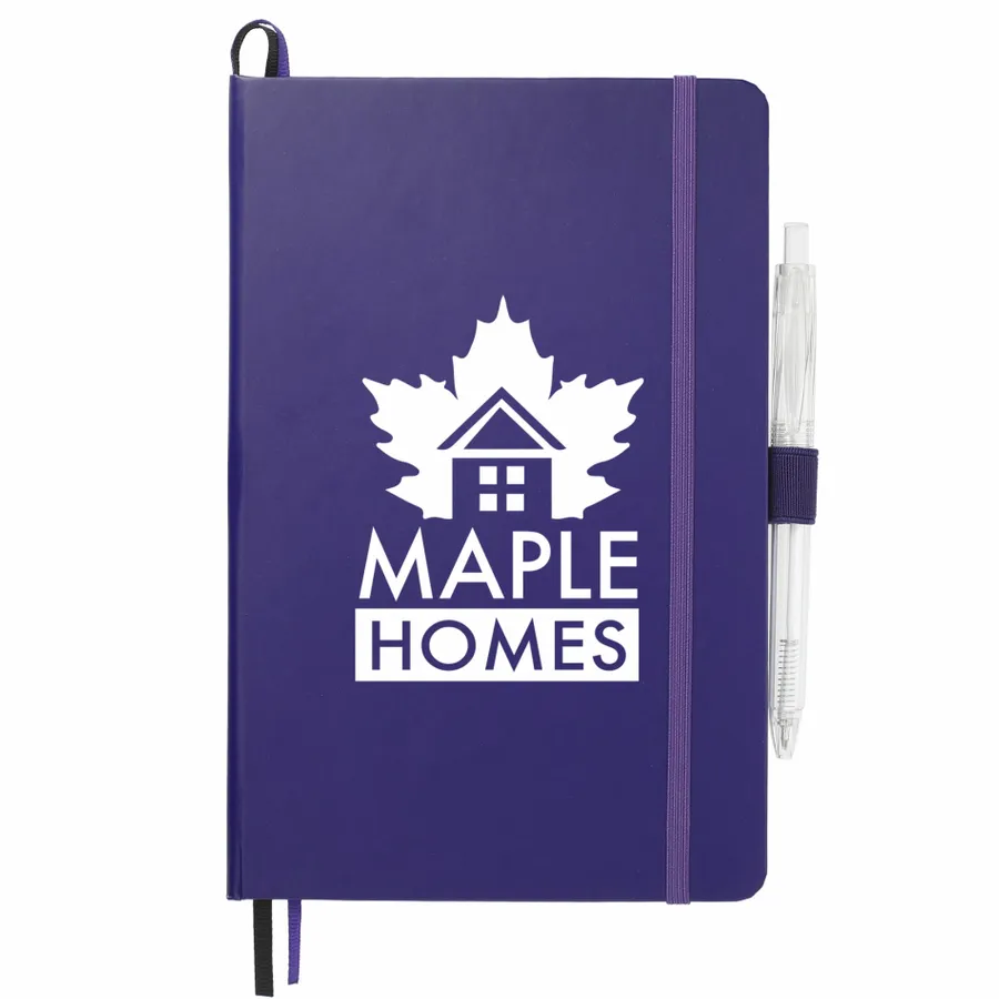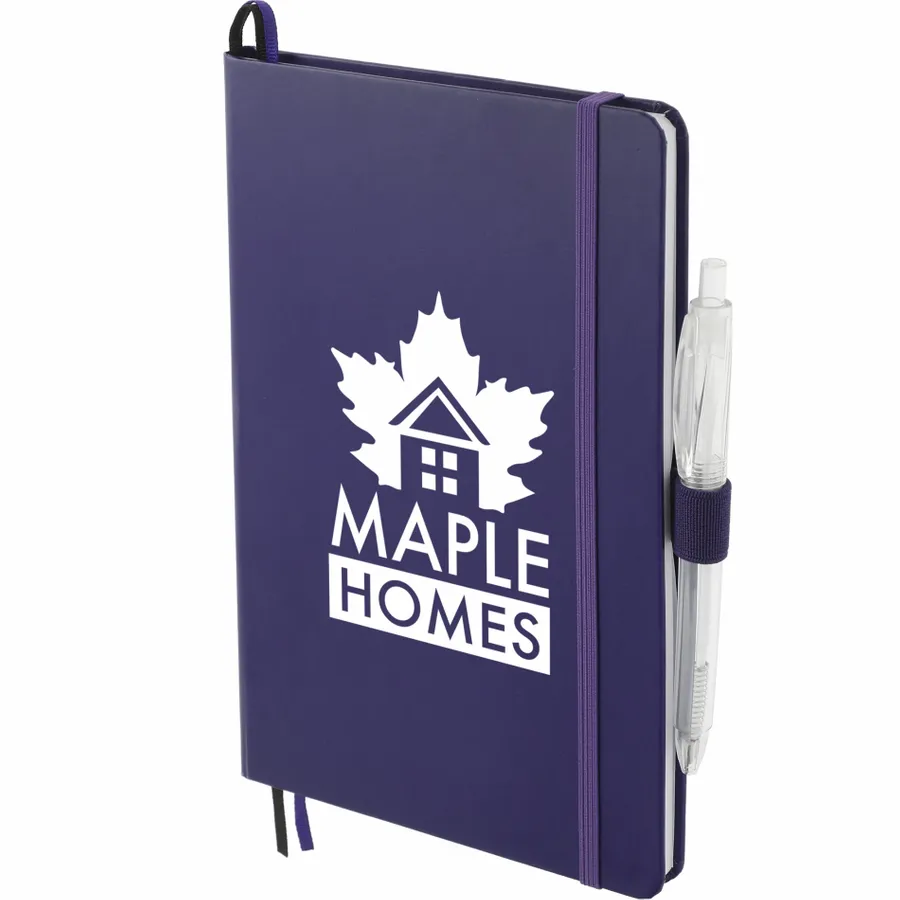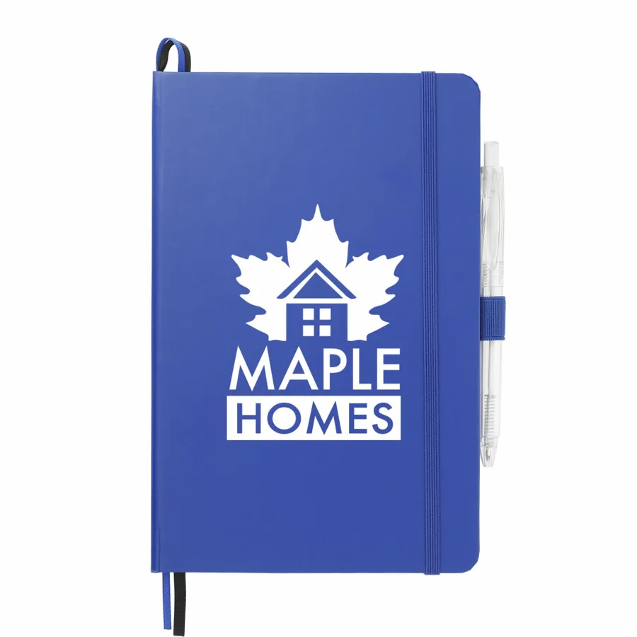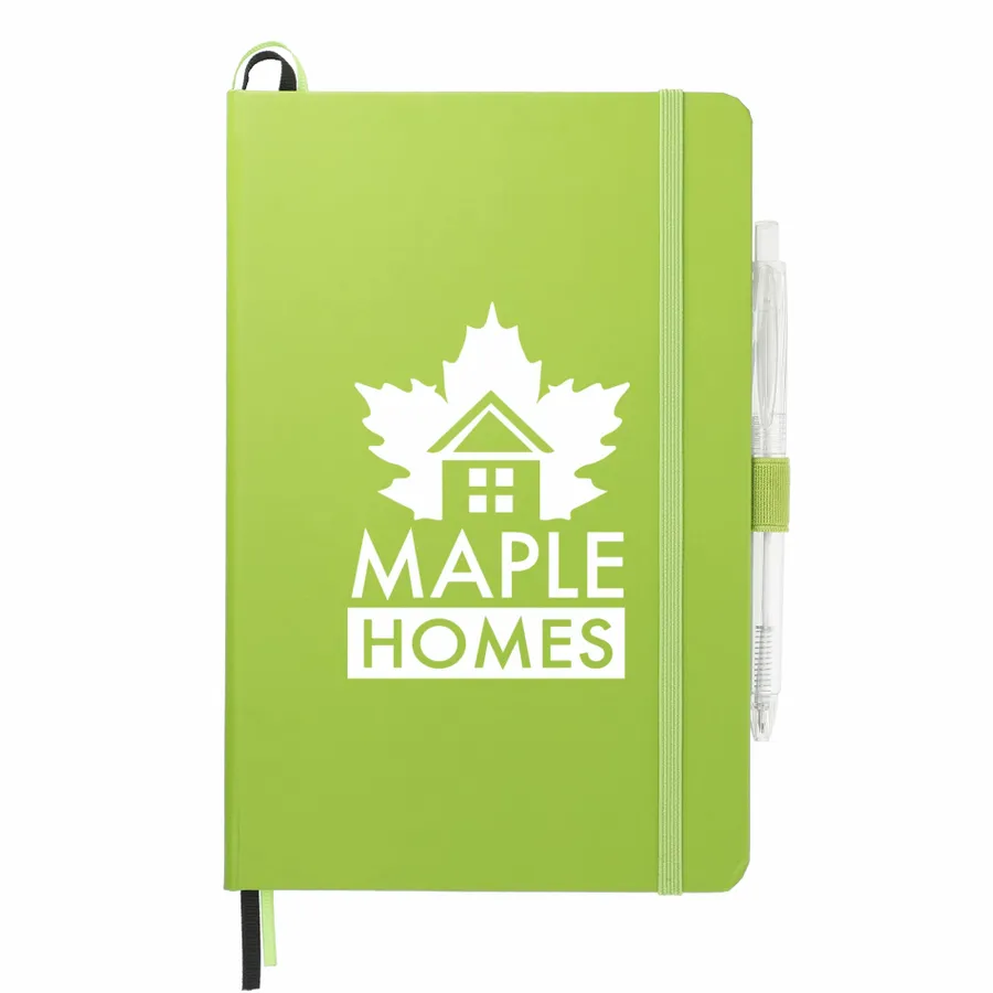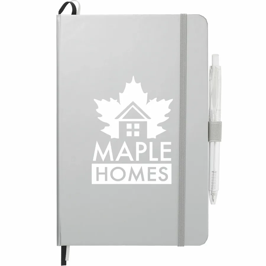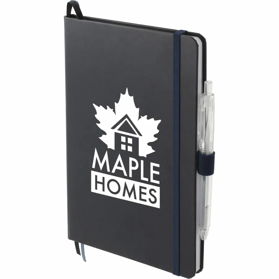 Das 5,5 x 8,5 FSC Mix Bound Journal Set enthält das 5,5 x 8,5 FSC Mix Bound Journal (2800-82) und den FUNCTION RPET Quick-Dry Gel Pen (6003-29). Das Set besteht aus einem Einband aus FSC-zertifiziertem Papier und 80 Blatt weißem, mit FSC-zertifizierter Sojatinte gefüttertem Papier. Mit farblich passendem Gummibandverschluss, Stiftschlaufe und Seitenmarker aus Band. Durch eine Partnerschaft mit 1% For The Planet wird ein Prozent des Umsatzes aller EcoSmart-Produkte an gemeinnützige Umweltschutzorganisationen gespendet.