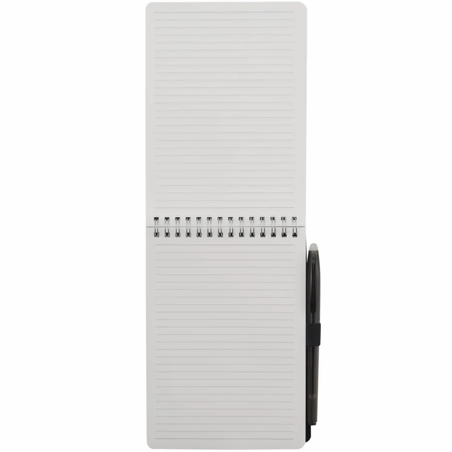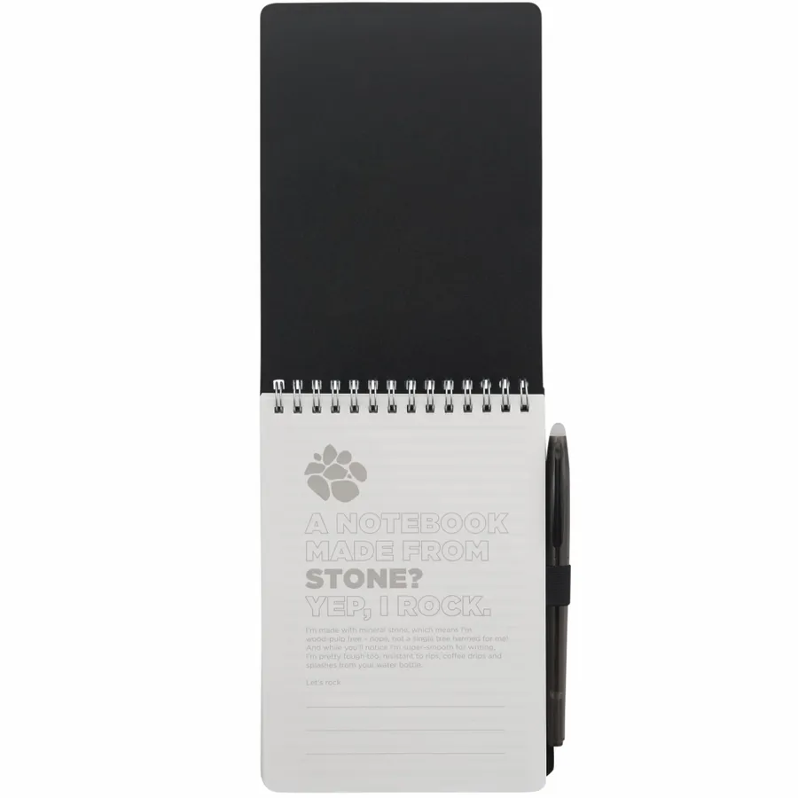 Das 5" x 7" Mineral Stone Field Reporter Notebook mit Stift hat einen Einband aus recyceltem PP, 64 Blatt liniertes Steinpapier und eine Silberdrahtbindung. Im Lieferumfang ist ein radierbarer RPET-Stift mit schwarzer Tinte und elastischer Stiftschlaufe enthalten. Im Rahmen einer Partnerschaft mit 1% For The Planet wird ein Prozent des Umsatzes aller EcoSmart-Produkte an gemeinnützige Umweltschutzorganisationen gespendet. Bitte beachten Sie, dass die Stifte separat verpackt sind.