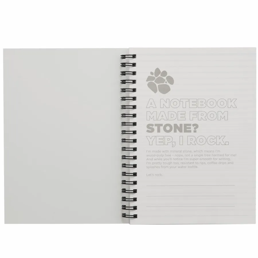 Das 5" x 7" Mineral Stone Field Spiral Notebook hat einen Einband aus recyceltem Polypropylen, eine schwarze Drahtbindung und 64 Blatt weißes, liniertes Steinpapier. Im Rahmen einer Partnerschaft mit 1% For The Planet wird ein Prozent des Umsatzes aller EcoSmart-Produkte an gemeinnützige Umweltorganisationen gespendet.